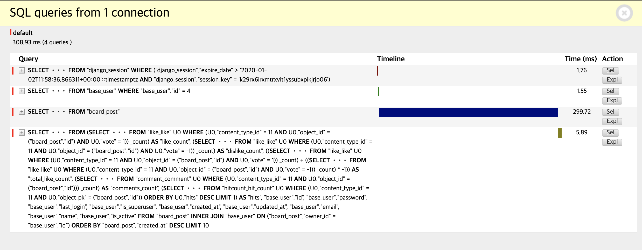 대신 페이지네이션 부분에서 로드가 커졌다. 3번째 줄에 나타난 쿼리는 아래와 같다.